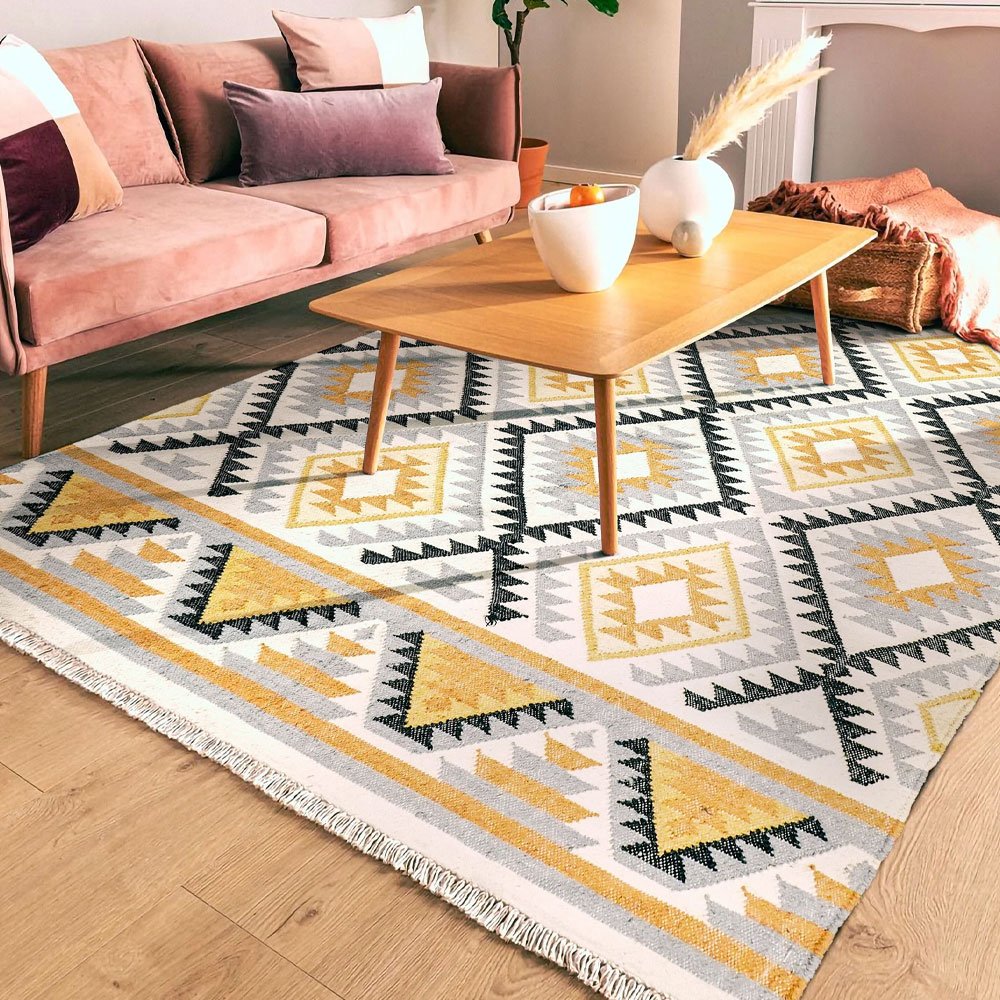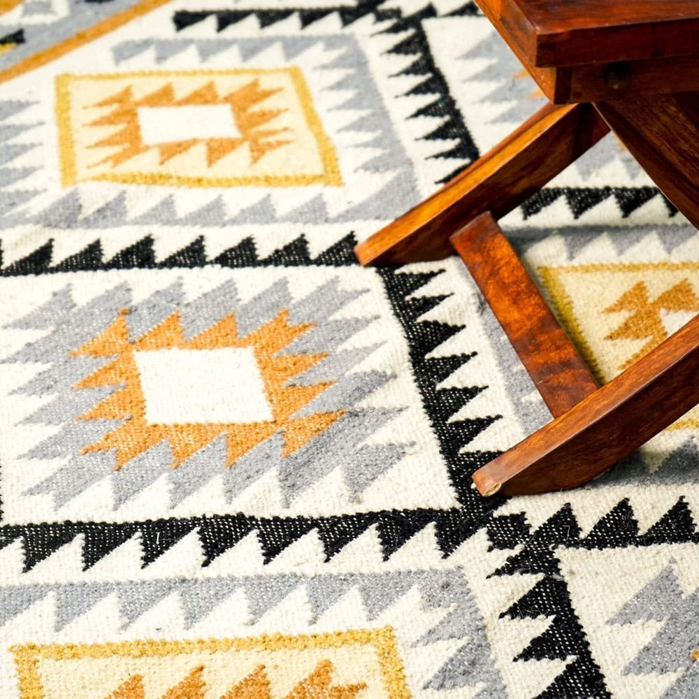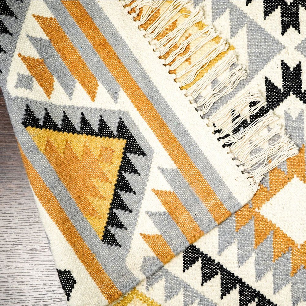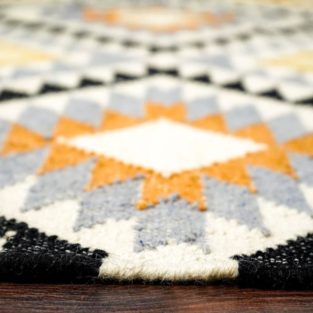 Odmień swój dom dzięki ręcznie tkanemu dywanowi Bright Diamond Indian Kilim, oszałamiającemu połączeniu skandynawskiego minimalizmu i tradycyjnego rzemiosła. Wykonany w 100% z wełny, dywan ten posiada skomplikowane frędzle i plecione warkocze, dzięki czemu jest idealnym elementem centralnym dla obszarów o dużym natężeniu ruchu. Ciesz się ciepłem i teksturą, które wniesie do Twojej przestrzeni życiowej.