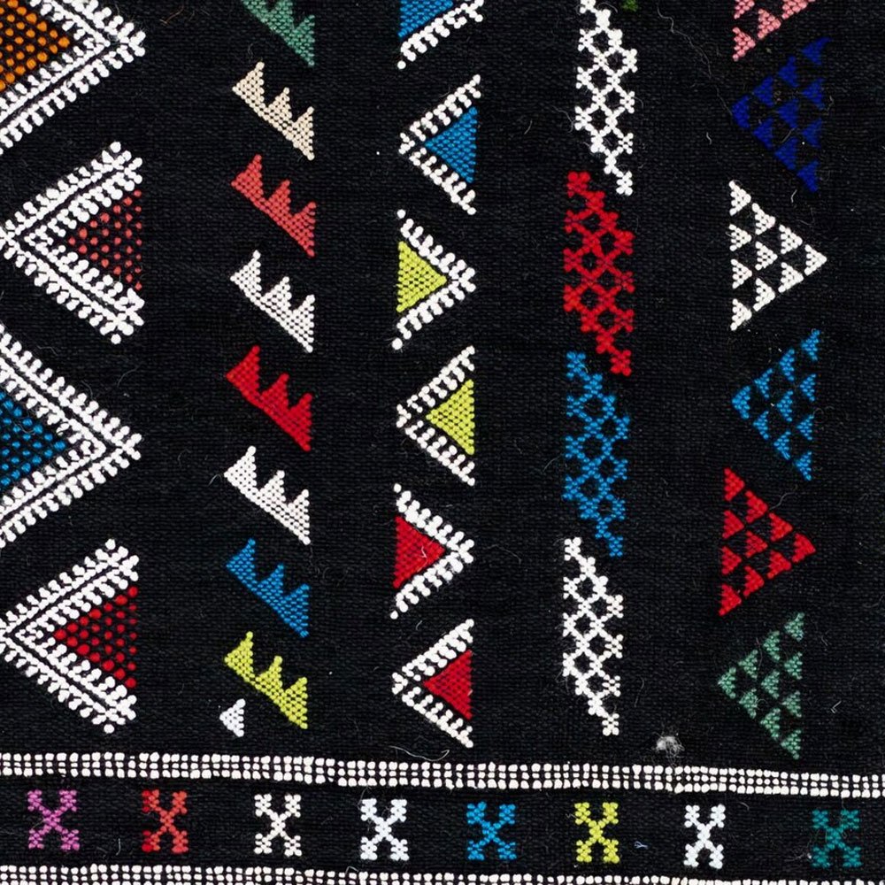 Odmień swoją przestrzeń dzięki dywanowi Traditional Black Akhnif Berber kilim, arcydziełu ręcznie tkanemu przez wykwalifikowanych marokańskich rzemieślników. Ten wykwintny dywan charakteryzuje się skomplikowanymi geometrycznymi wzorami i naturalnymi motywami, płynnie łącząc się zarówno z neutralnymi, jak i śródziemnomorskimi stylami. Idealny do dodania odrobiny autentycznej elegancji do domu lub salonu, ten dywan jest świadectwem piękna ręcznie wykonanego rzemiosła.